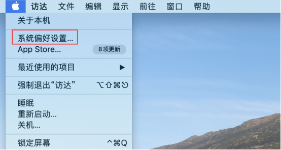 1. 点击左上角菜单 “Safari浏览器”→点击“系统偏好设置”